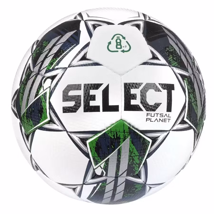 Futsalboll Planet är gjord av PU-material i hög kvalitet och är delvis framställd av återvunna plastflaskor och naturlig latex.
