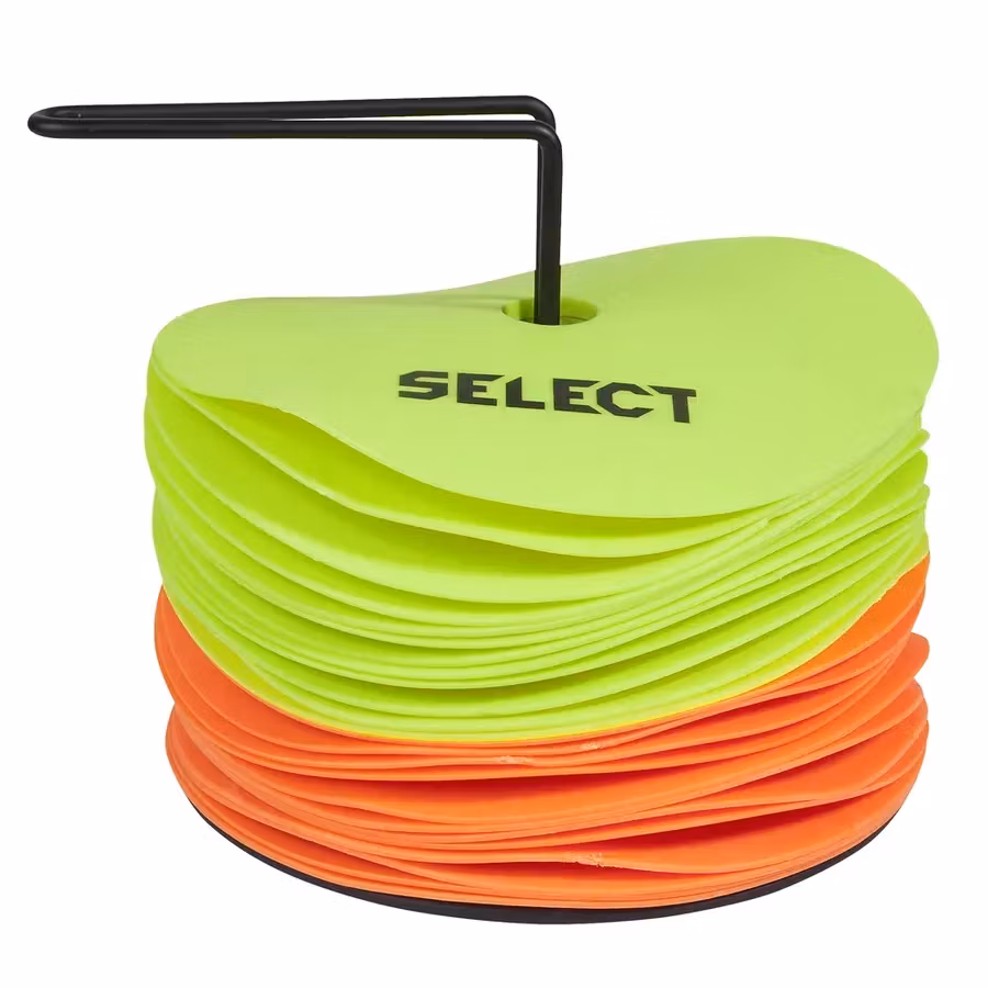 Markeringsplattor från Select är producerade i ett halksäkert gummimaterial för inomhus bruk. Passar bra till bland annat handboll, basket, fotbollssträning banmarkering, gymtimmen m.m, som en ersättning för koner.
