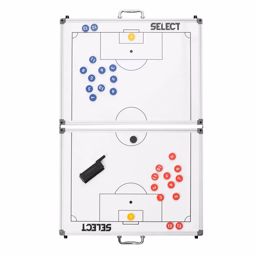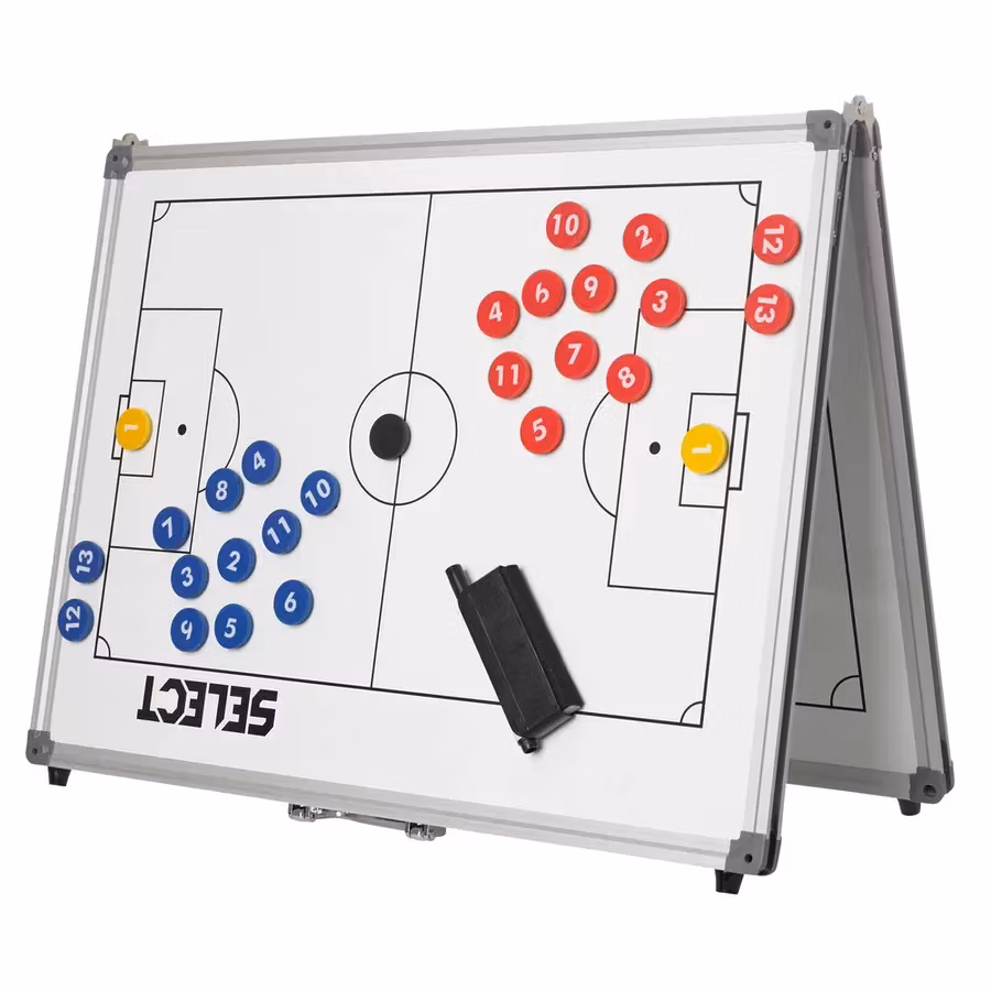 Taktiktavla för fotboll som tar liten plats och kan fällas ihop för att enkelt kunna tas med. Oumbärlig för tränaren i fotboll
