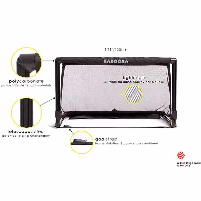 Bazookamål är världens mest kompakta ihopfällbara mål med hård ram i nylon och glasfiber kompositmaterial.