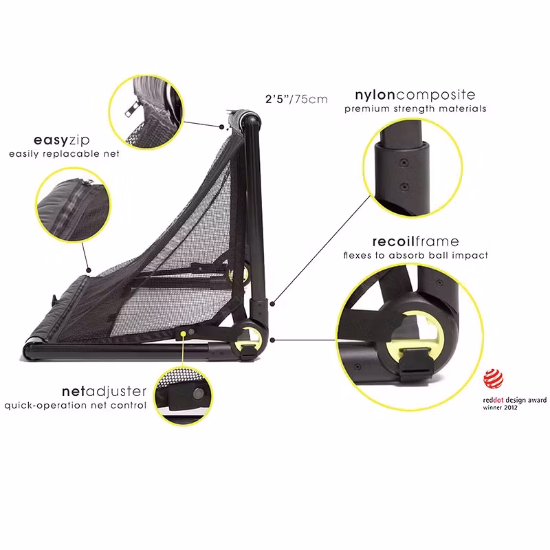Den patenterade teleskopkonstruktionen gör att målet kan fällas ihop på några få sekunder. Det invändiga fjädersystemet håller bra för skott som träffar ramen och reducerar behovet av markfästen.